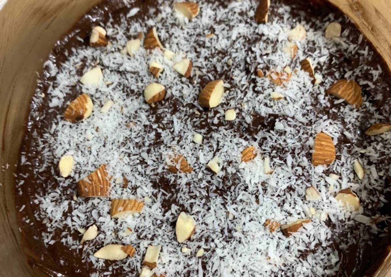 - Una vez derretido se incorpora al plátano triturado se mezcla bien y se incorporan las nueces o almendras y algo de coco y para decorar y lo mismo.