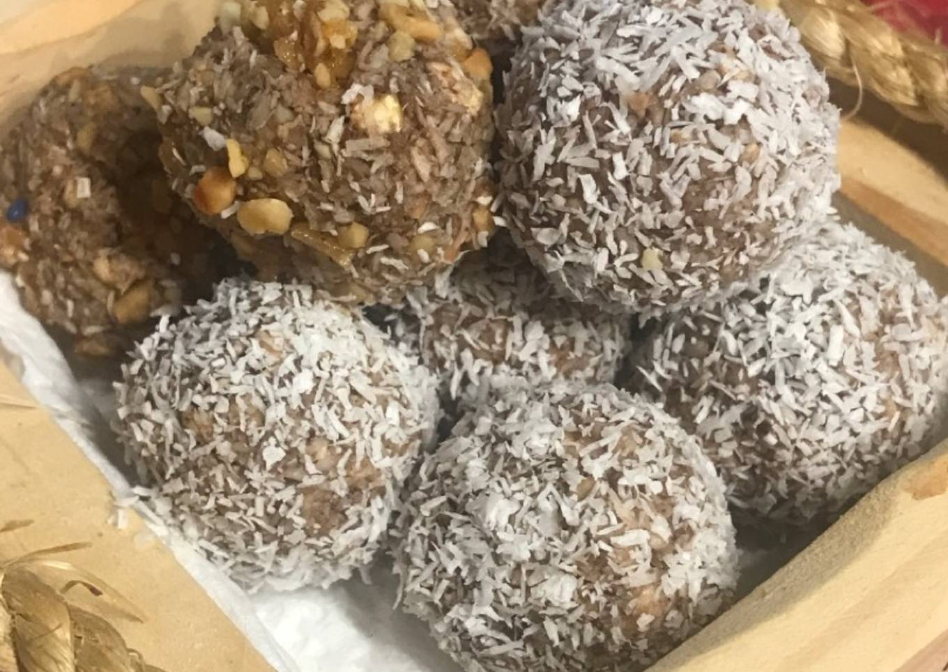 - Después se incorpora el coco y la avena mezclar nuevamente hasta que se una y se arme una pasta. Llevar a heladera por una hora y luego armar las bolitas y pasarlas por coco o por frutos secos.