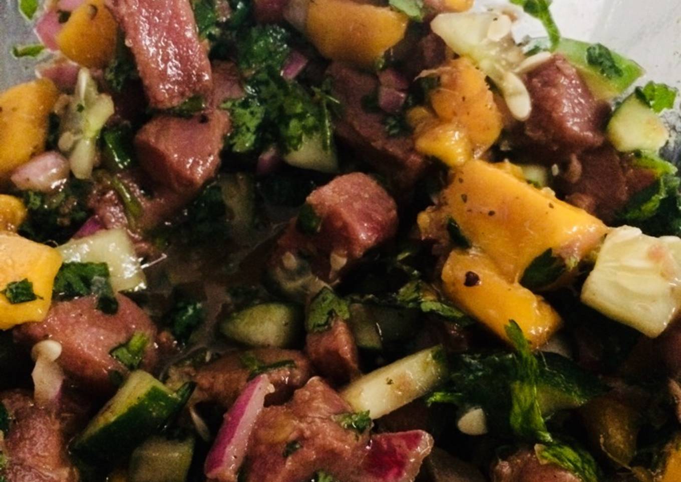 - Pica el mango, el cilantro y el pepino, incorpora todo a la mezcla, si es necesario agrega más Limón, sal y pimienta. Acompáñalo con tostadas