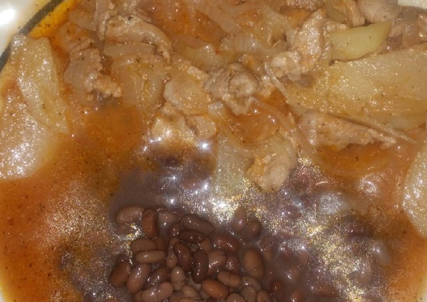 Hello everybody, I hope you are having an incredible day today. Today, I'm gonna show you how to make a distinctive dish, Bistec de puerco con cebolla y papas en salsa de jitomate. One of my favorites food recipes. This time, I'm gonna make it a bit tasty. This will be really delicious.