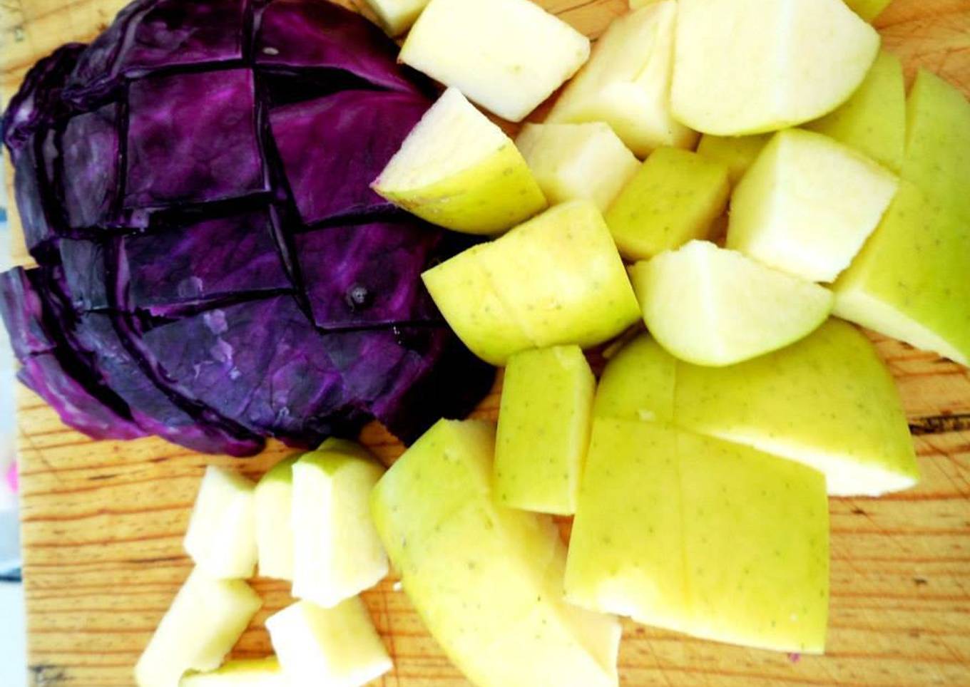 - Ponemos a calentar la mantequilla y saltea el repollo, cuando ablande agregamos la manzana sin dejar de saltear