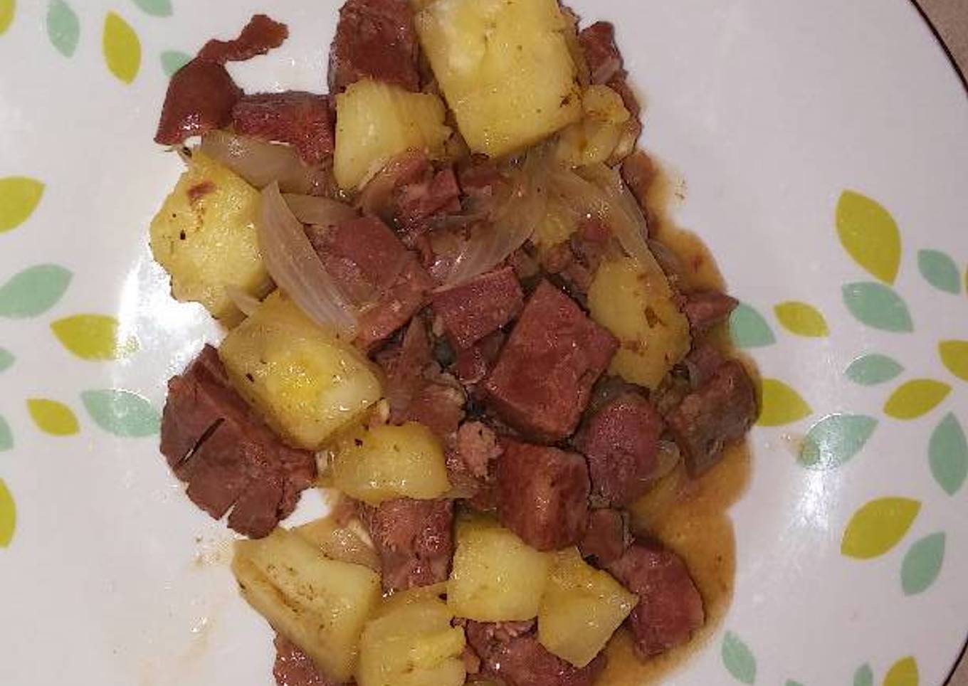 Esta receta es muy sencilla, rápida y deliciosa. La he preparado con chuleta fresca y ahumada o jamón de lengua. Solo varía la cantidad de sal a agregar (en ahumado y jamón casi no hay que agregar nada de sal). Que lo disfruten 😉🐷🍍