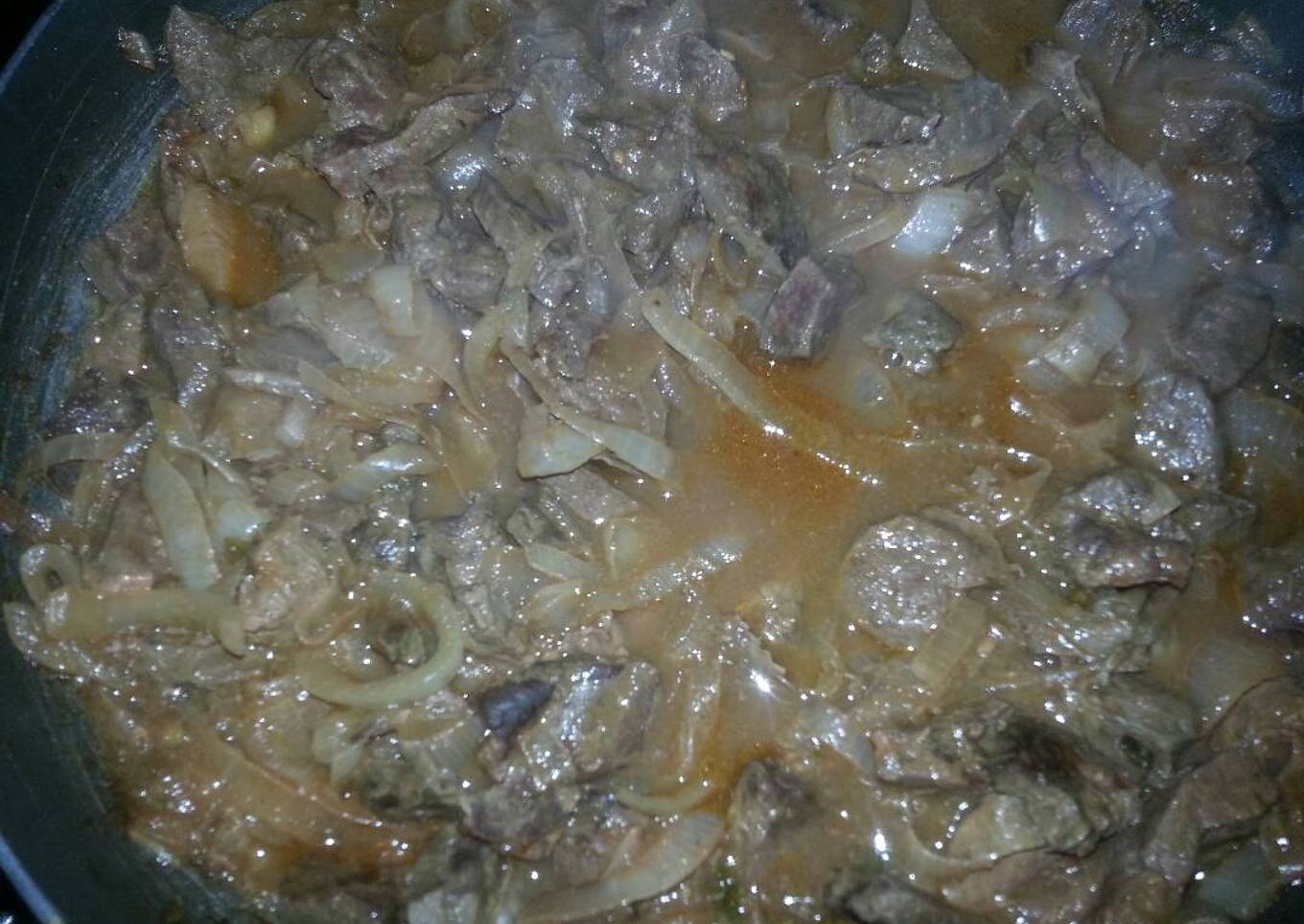 - Dorar la cebolla y cuando este a medio dorar poner el hígado ya partido en pedazos medianitos.
