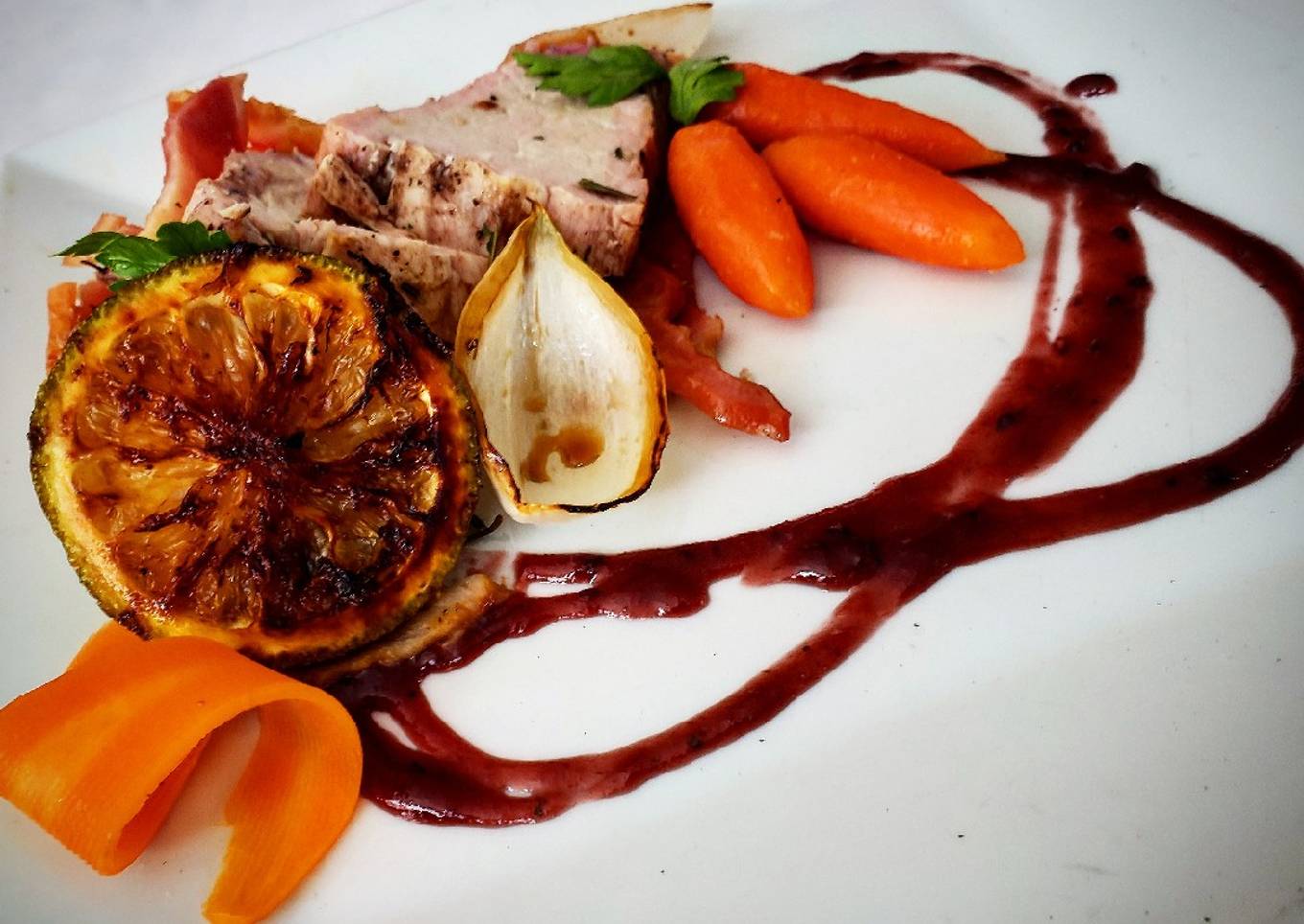 Lomo de cerdo en salsa de zarzamora y vino tinto