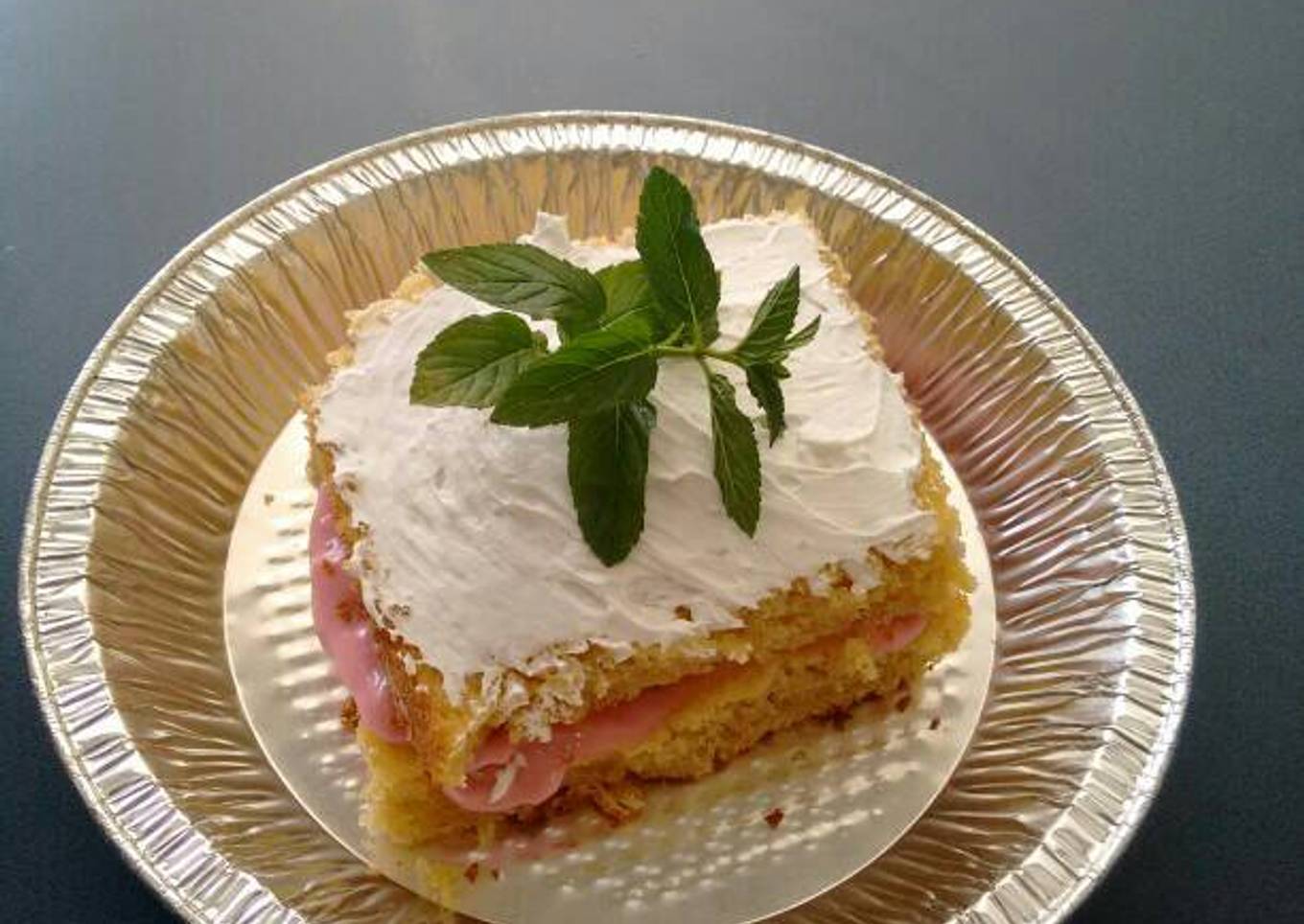 Pastel con natilla de fresa y crema Chantilly. ॐ